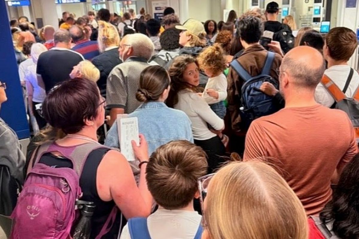 Some stranded passengers claimed people were vomiting and passing out in the huge queues at Milan’s Linate airport, on Sunday, as they also dealt with a heatwave.