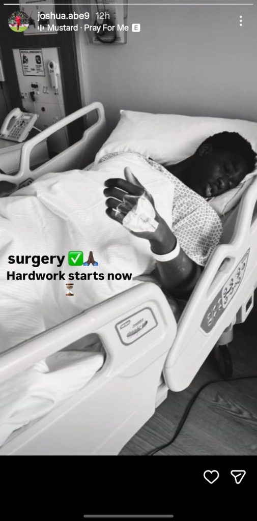 Highly rated youngster Joshua Abe has confirmed on Instagram that he has undergone successful surgery after the serious leg injury he suffered on England U16 duty, posting a photo from his hospital bed alongside the message “surgery done, hard work starts now.”