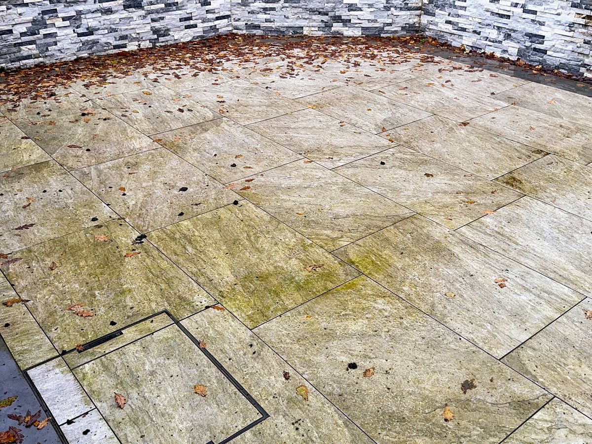Patios are prone to accumulating dirt, algae, moss and lichen, especially after months of cold, damp weather. Green algae is particularly common on patios and is often caused by persistent moisture, shade, and debris, which create the perfect environment for the spores to settle and thrive.