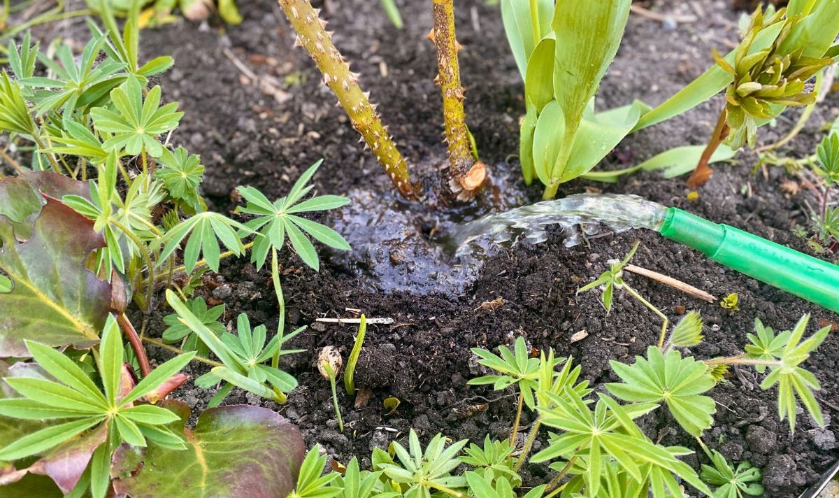 To finish this job, I ensure watering as close to the rose’s base as possible. Once the water started running away from the base, I briefly stopped to let it soak into the soil before continuing for a bit longer.