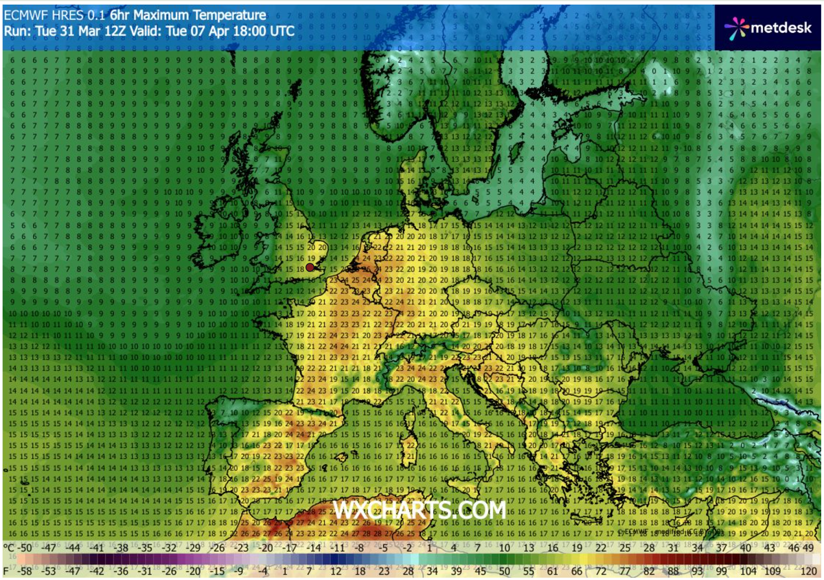 According to WXCharts weather maps, using MetDesk data, several regions in the UK are expected to reach temperatures higher than in Greece and Turkey.