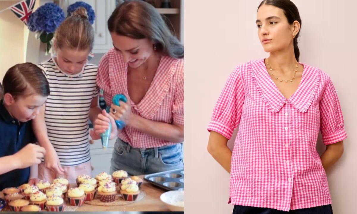 Fans may remember Kate wearing the piece in a sweet at-home video baking with her children to mark the Queen Elizabeth II Platinum Jubilee back in 2022. Featuring a seersucker gingham check print and a frill statement collar, it’s a throw-on-and-go piece that is perfect for warmer weather and feels a little more elevated than a classic t-shirt.